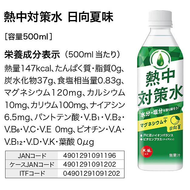 塩(国内製造)、L-カルニチンL-酒石酸塩、海水(海洋深層水)ミネラル/ 酸味料、硫酸マグネシウム、香料、塩化カリウム、甘味料(アセスルファムK、スクラロース)、ナイアシン