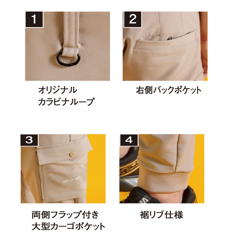 ▶ニット素材を思わせるストレスフリーの柔らかな着心地ながらも、布帛素材ならではの屈強な堅牢性を誇るアルティメットワーキング素材を採用。