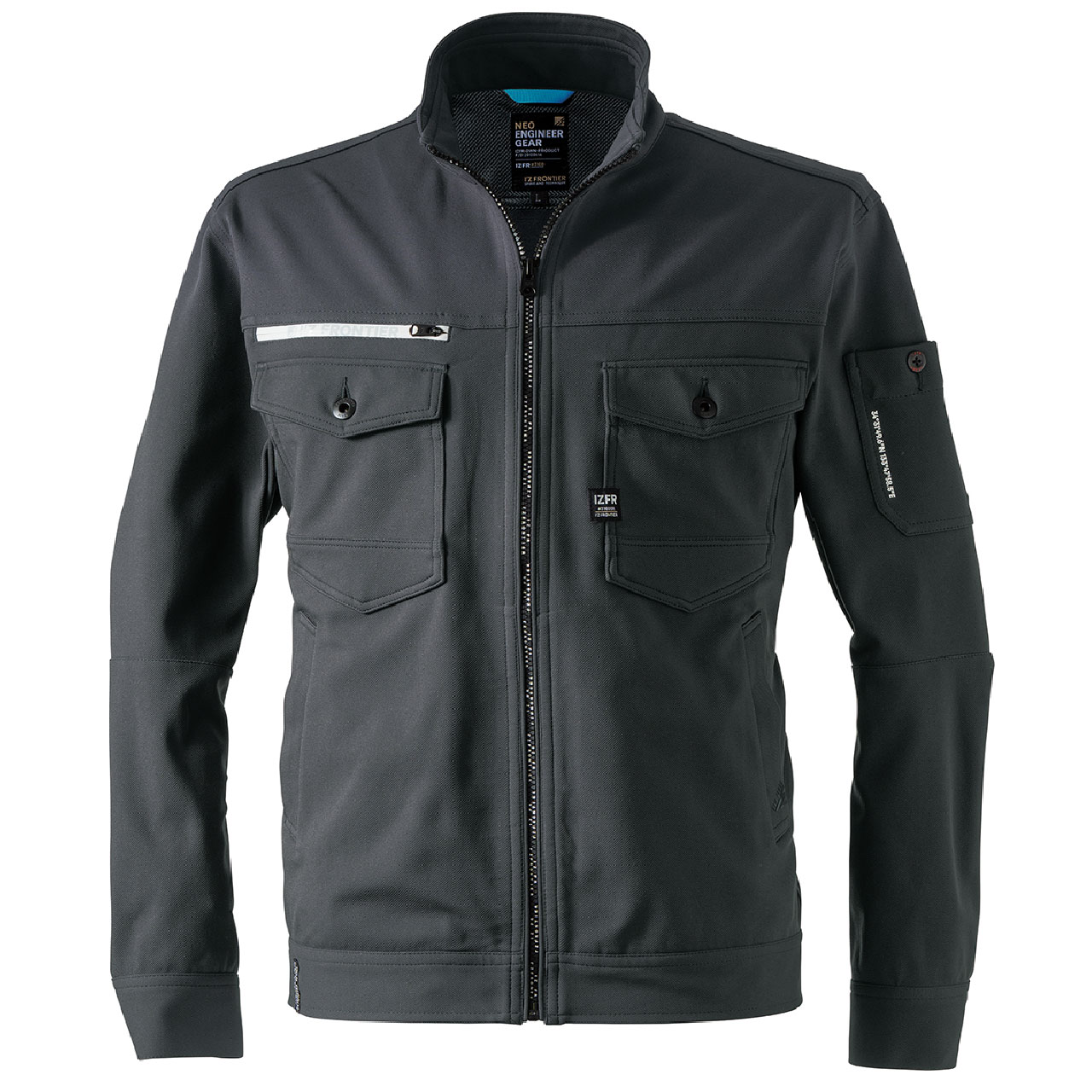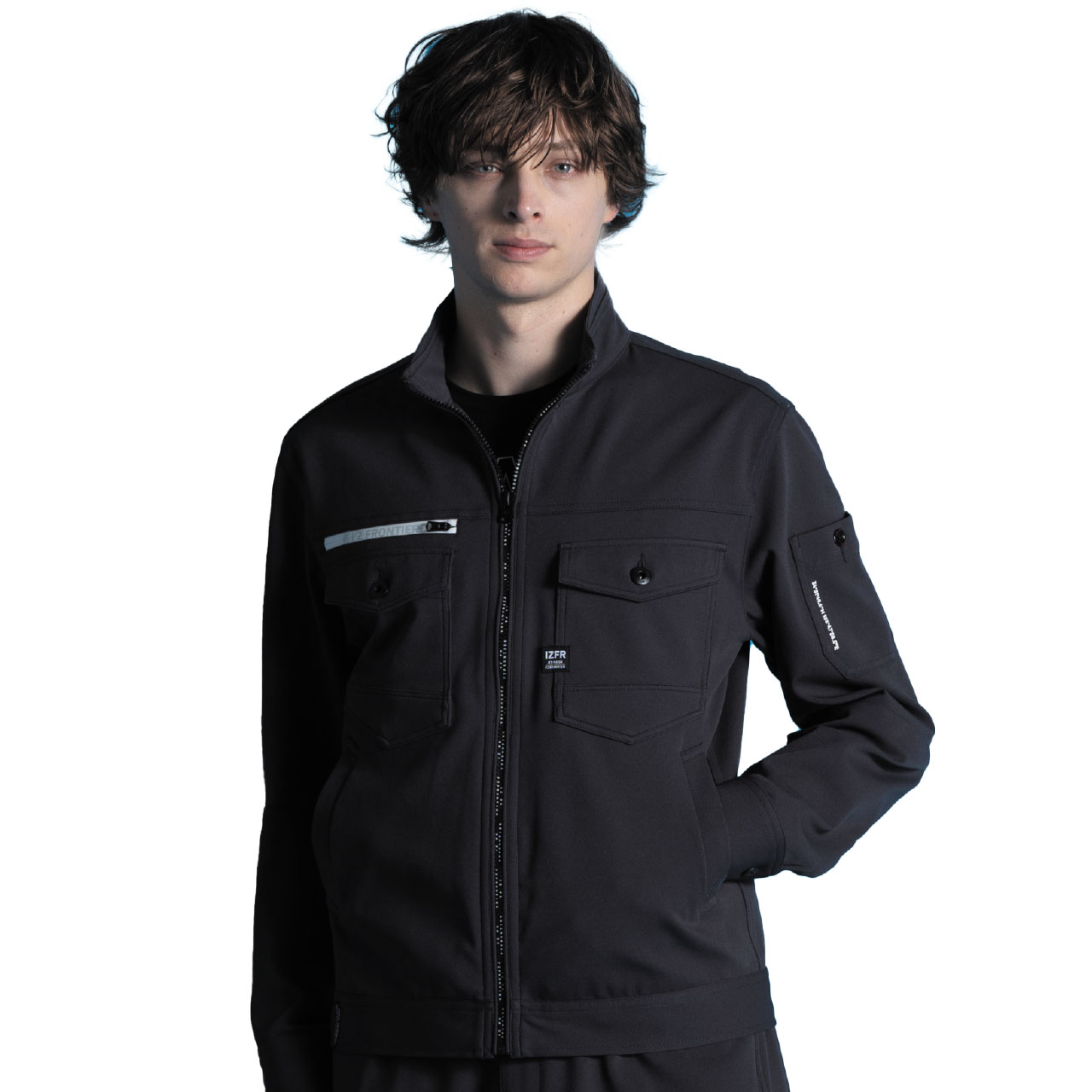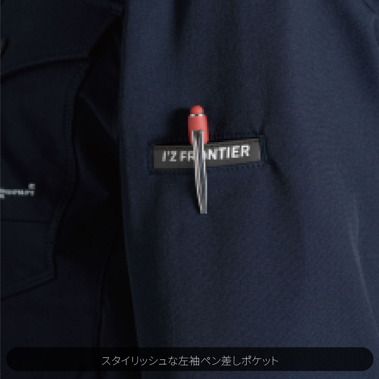 ▶高級感を高めるブランドレーザープリントを施したジャケットフロントファスナーや、ミリタリー感を演出する国産YKK 社製タック釦を採用する等、アイズフロンティアならではの細部にまで拘り抜いたテイストは今アイテムでもしっかり と息づいています。