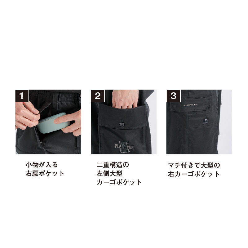 ▶ジョガーパンツは太もも周辺にややゆとりを持たせリラックス感を有しながらも美しいシルエットを表現するジョガー タイプを採用。更にスタイリッシュながらも9個のポケットを搭載した優れた機能性も大きな魅力。