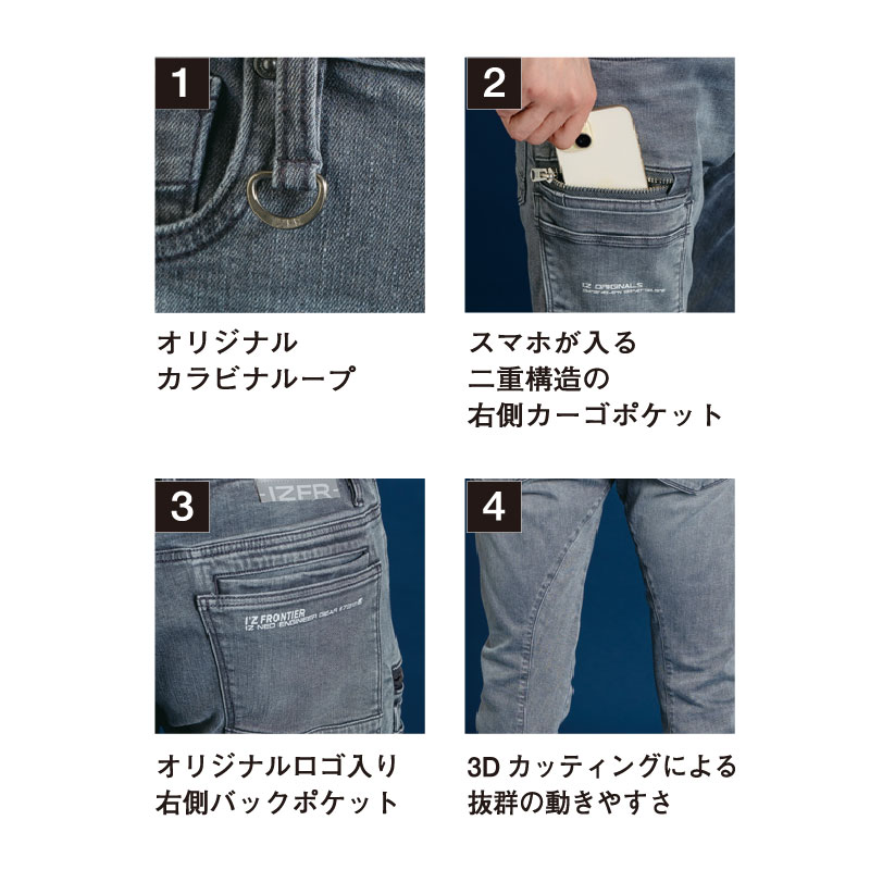 アイズフロンティア 3Dデニムカーゴパンツ #7312