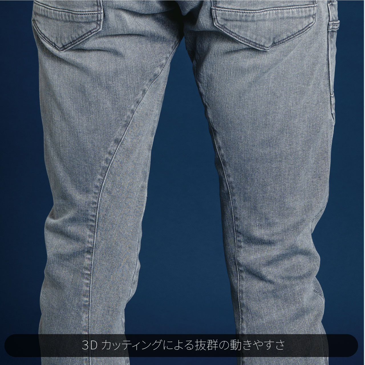 ▶現代におけるスタイリッシュを再定義し生み出された最新シルエットを誇るスト レッチデニムワークウェア。個人ユースのみならず、企業等のチームユニフォーム としてもその真価を遺憾なく発揮します。