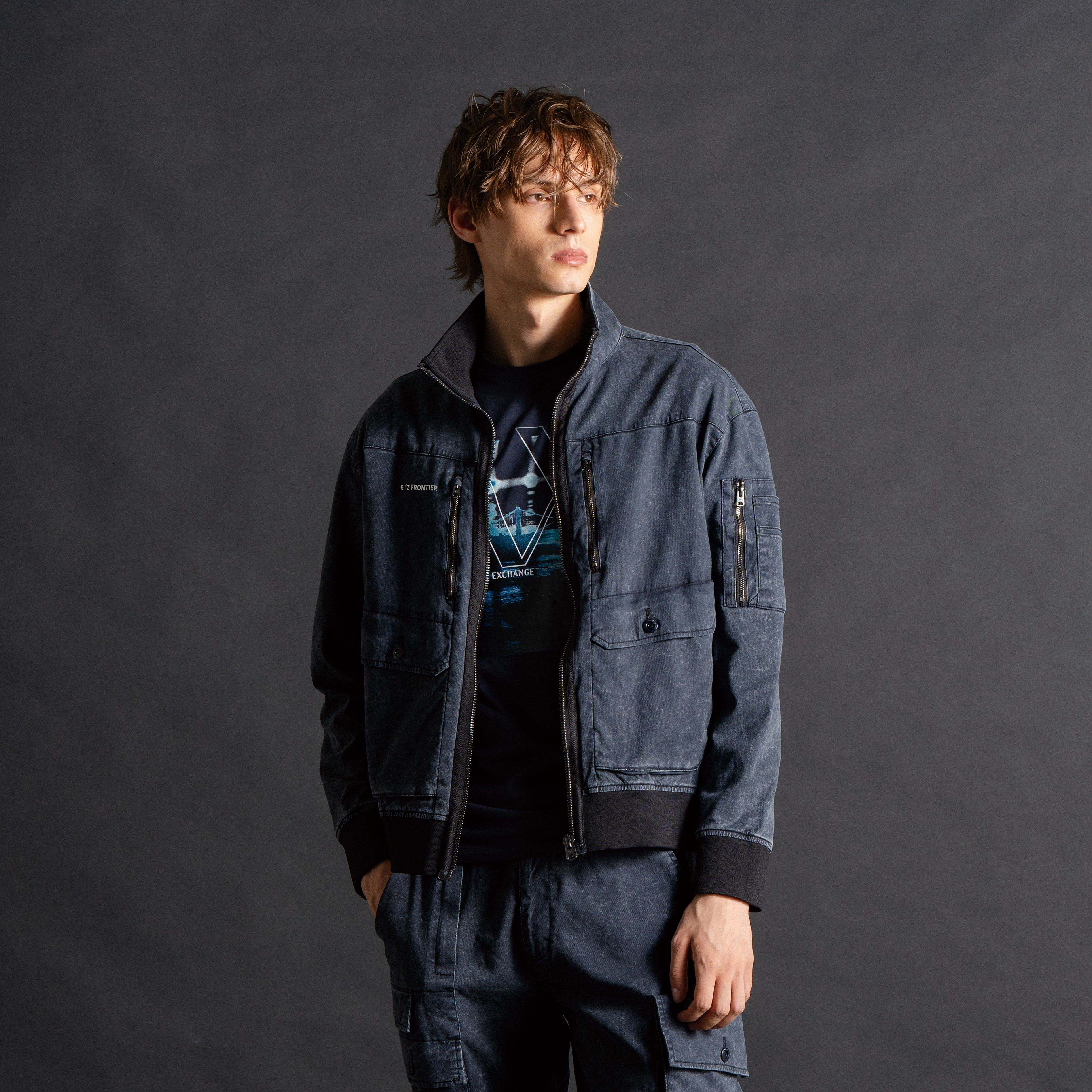▶ジャケットは屈強なイメージを醸し出すボンバーシルエットを採用。特徴的なライダーステイストをプラスした脇側ビッグポケットがワイルド感とリッチ感を両立させ、ジャケット裾ゴムにはロゴ入りジャガード (05番色)を採用する等、他に類を見ない極上の世界観を表現します。