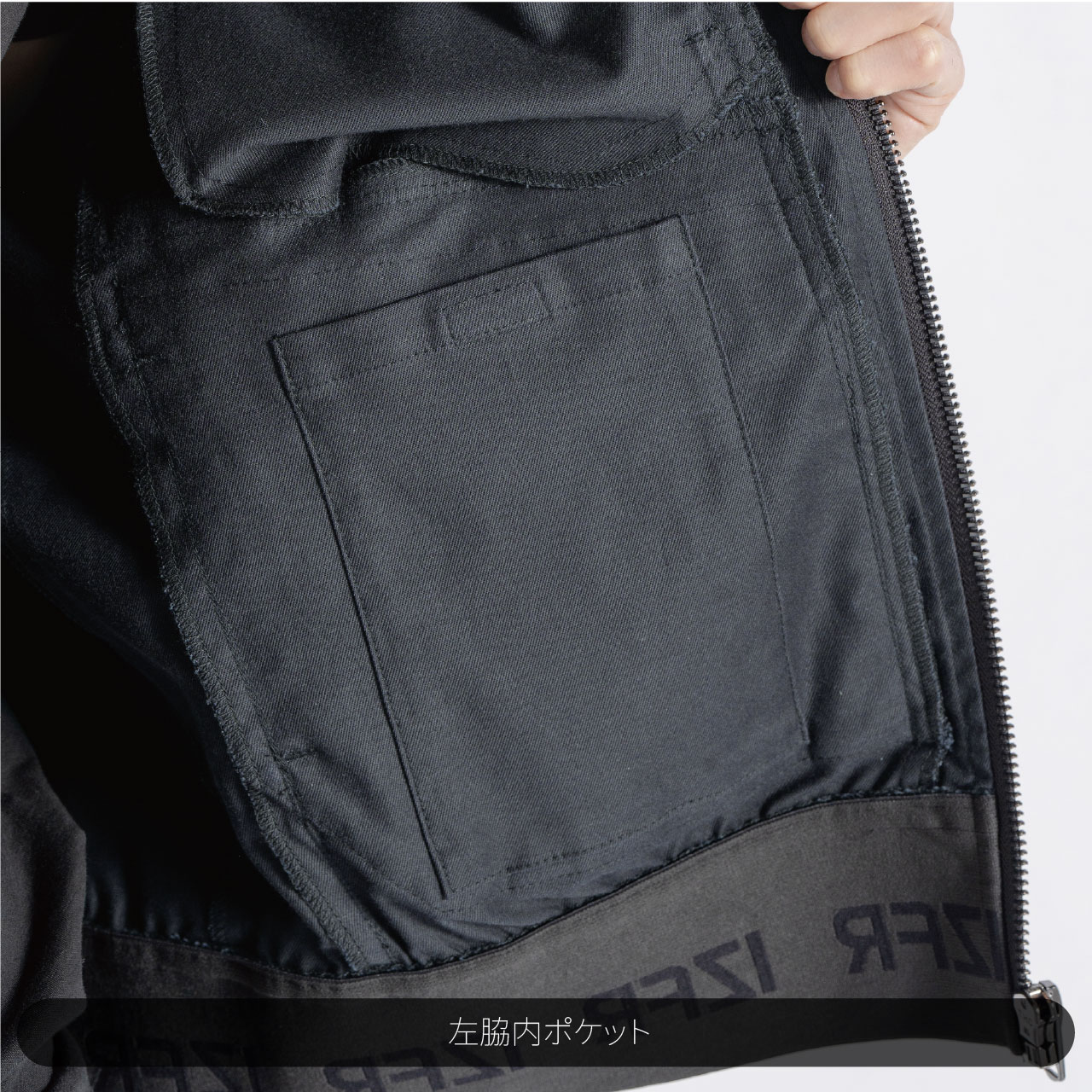 ▶高級感溢れる光沢感のジャケットフロントファスナーや国産YKK社製を使用したドット釦等、細部にまで拘りを追求。