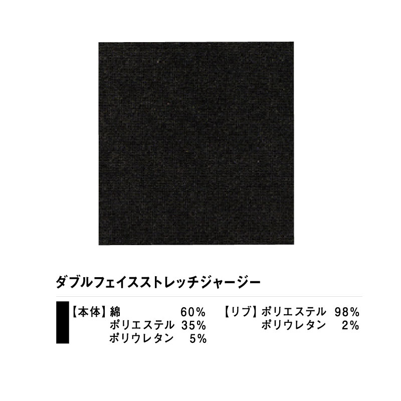 ▶布帛素材にせまる密度感と優しい肌触りの二重編みジャージー素材を使用。より'今'を表現するスポーティーカジュ アルモデル。