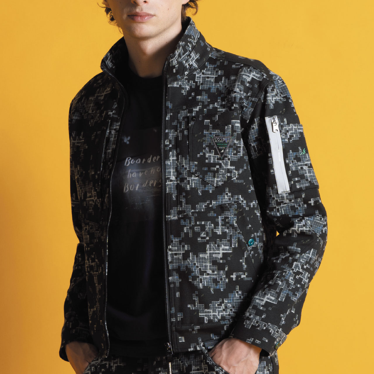 ▶ベルトバッチや様々なプリント加工等、あらゆる世代を刺激するホップな要素が満 載。オン・オフを問わず着用可能な超個性派ワークウェア。