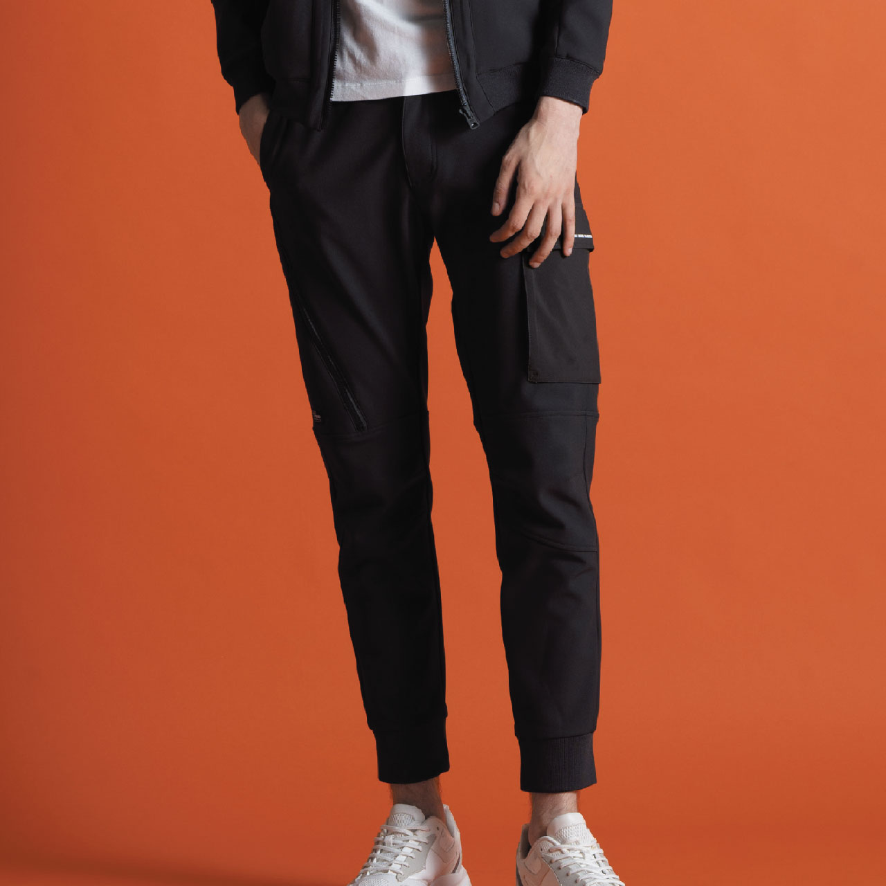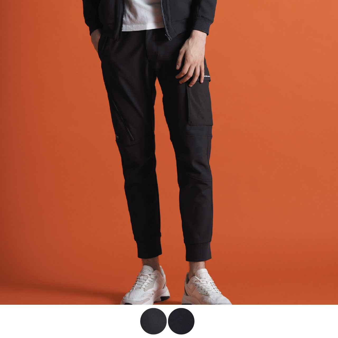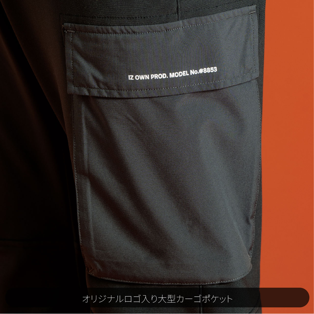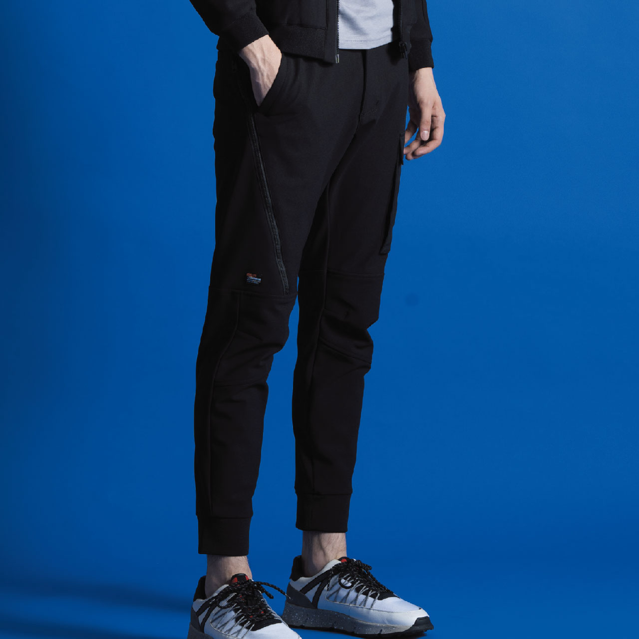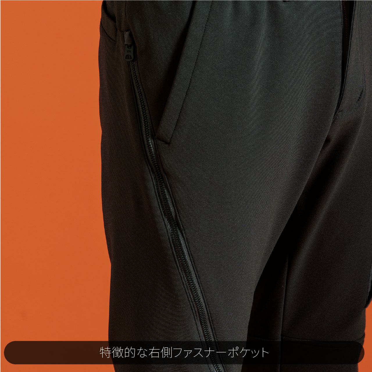 ▶ジャケット袖ポケットやジョガーパンツカーゴポケットには強度の強い別布布帛生地を採用し、強度とデザイン性アッ プを実現。