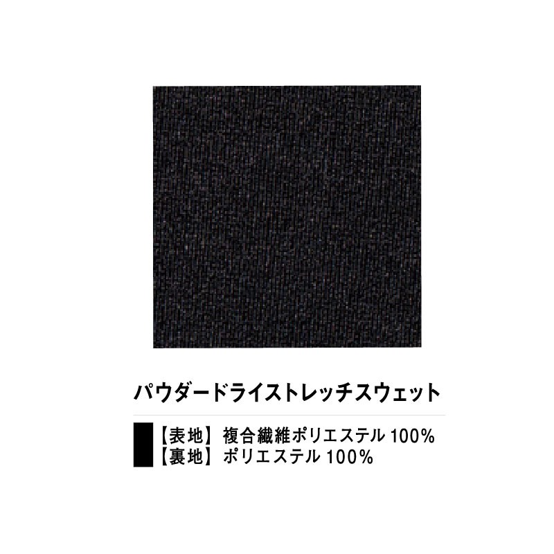 ▶複合繊維を採用し、伸長率ヨコ約40%、伸長回復率(1時間後)ヨコ約96%、寸法 変化率タテ0%/ヨコ-0.2%を測定した適度な動き易さと、ポリウレタン糸使用素 材では再現出来ない型崩れの少ない安定したシルエットキープを実現します。