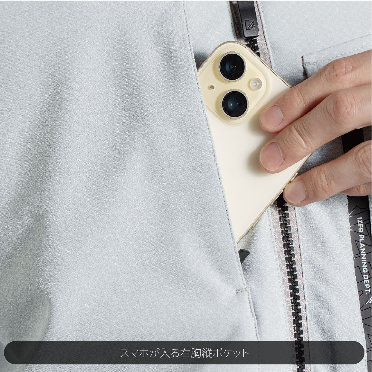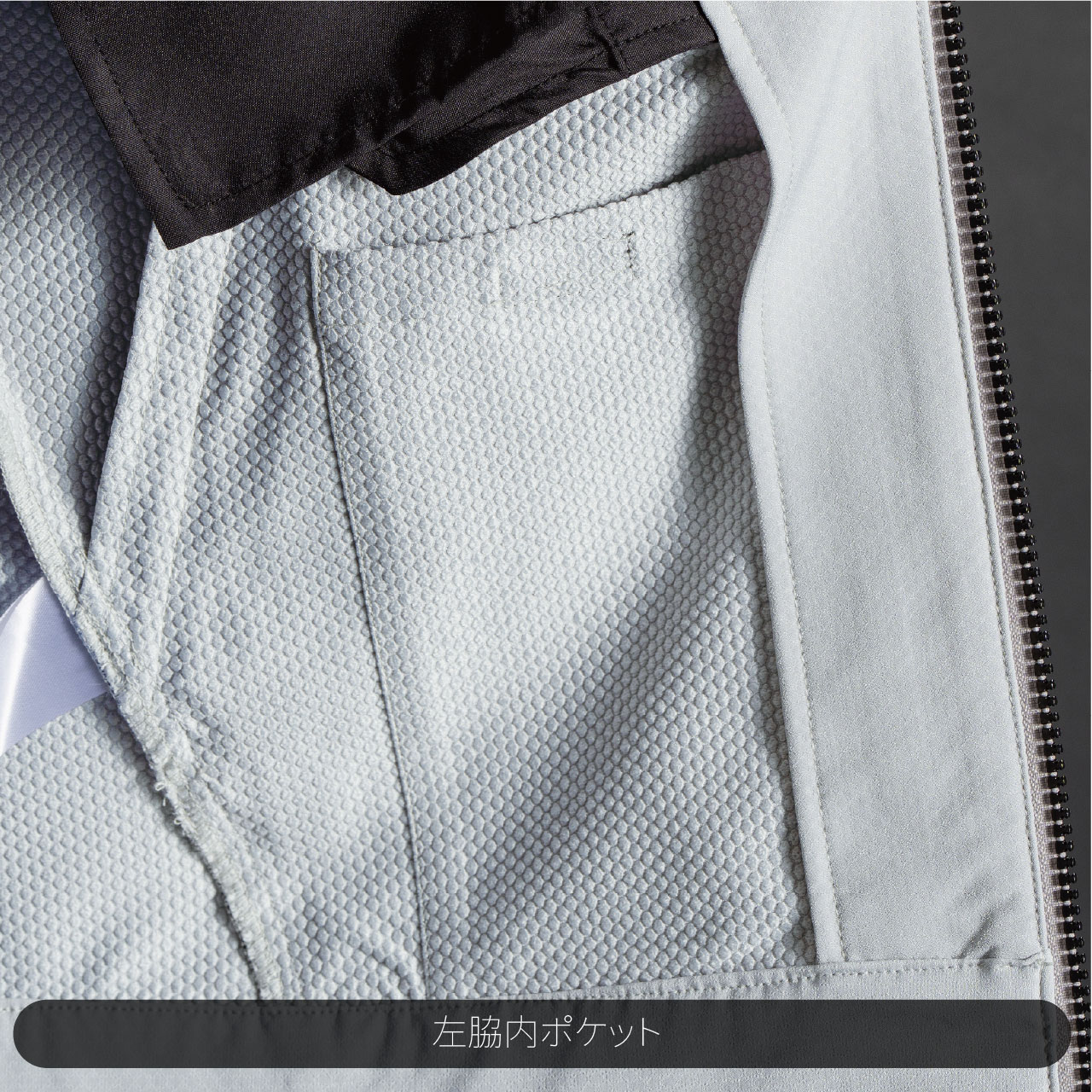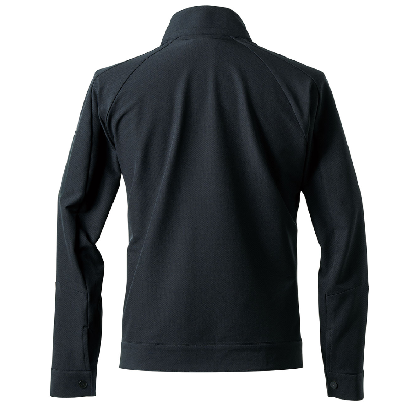 ▶素材表面の高密度な組織構造により風抜け感を軽減。1枚の素材ながらも通気度=2.6ccを誇る高い防風性と適度な 透湿性を併せ持ち、ムレ感の少ない快適性を発揮。