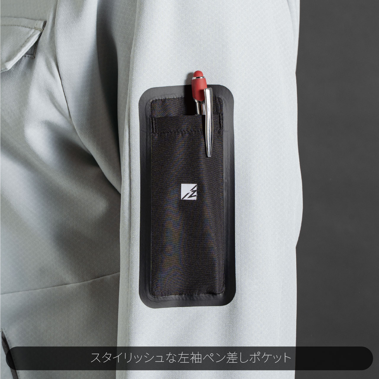 ▶計算しつくしたレタリングラバープリントを施し個性を主張し過ぎることなくデザイン性をアップ。企業ユニフォームと しても対応可能。