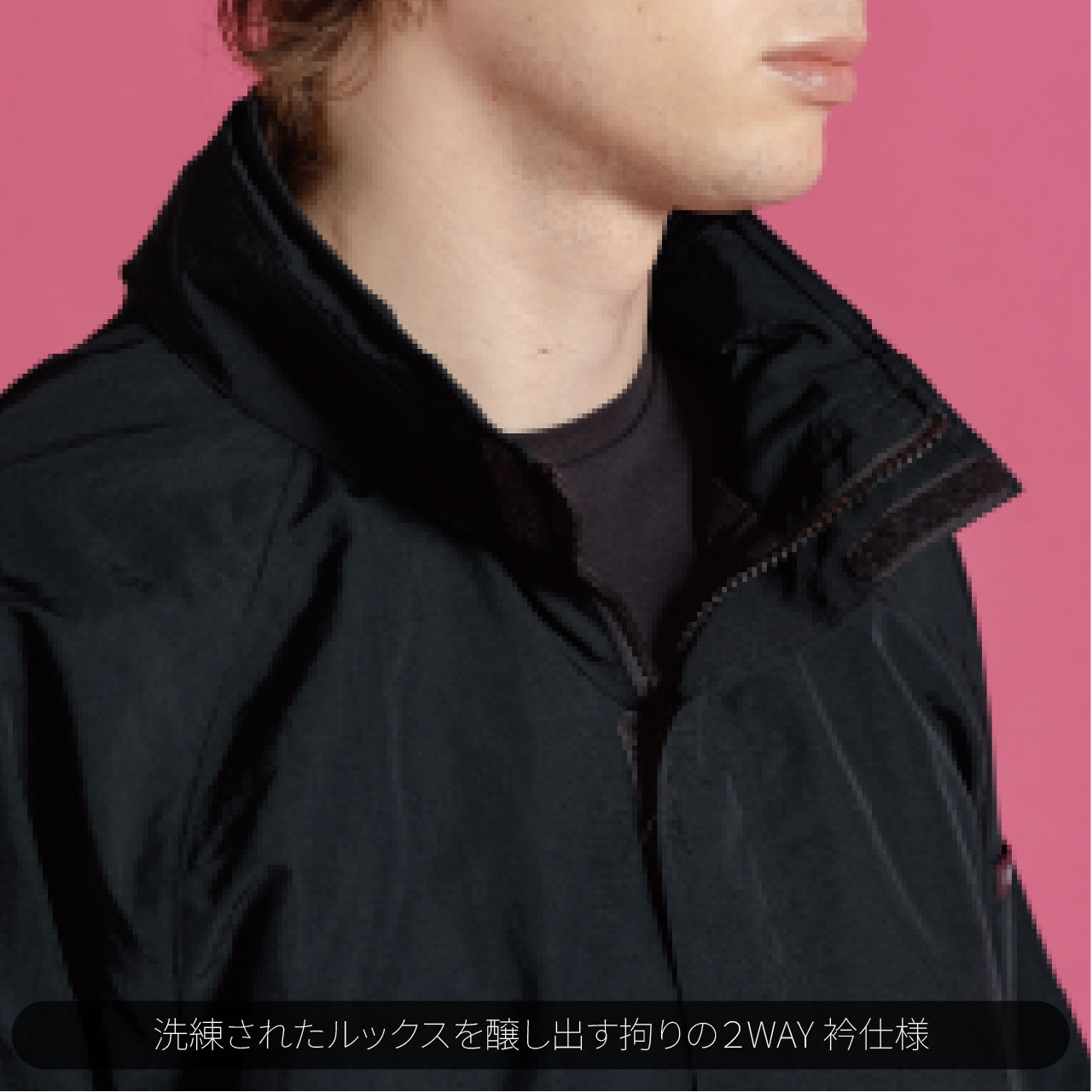 ▶衿はフード収納仕様。2タイプの着こなしが楽しめます。