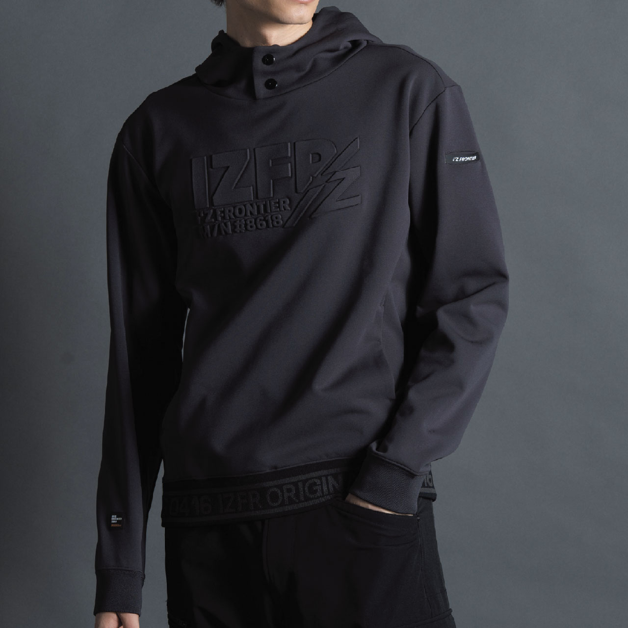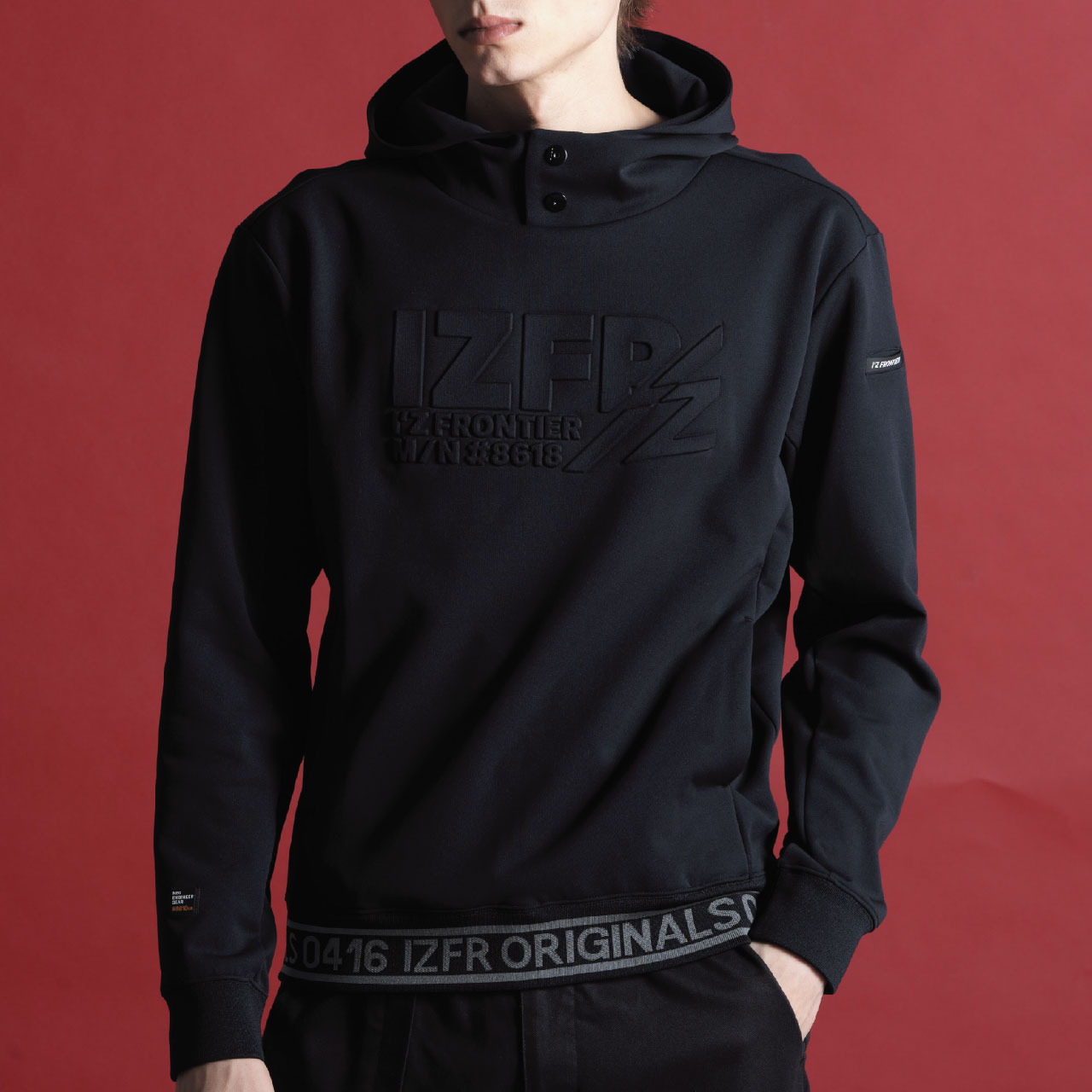 ▶3Dエンボス加工を施しラグジュアリーなスポーティーテイストを発揮する#8610 ↪、チームウェアとしても着用可能なシンプルデザインの#8619の3種類 のフーディーアイテムをラインナップ。アイテム毎に計算しつくした様々なデコ レーションを配し細部にまで拘りを追求。アイズ独自なルックスであらゆるシーン に対応します。