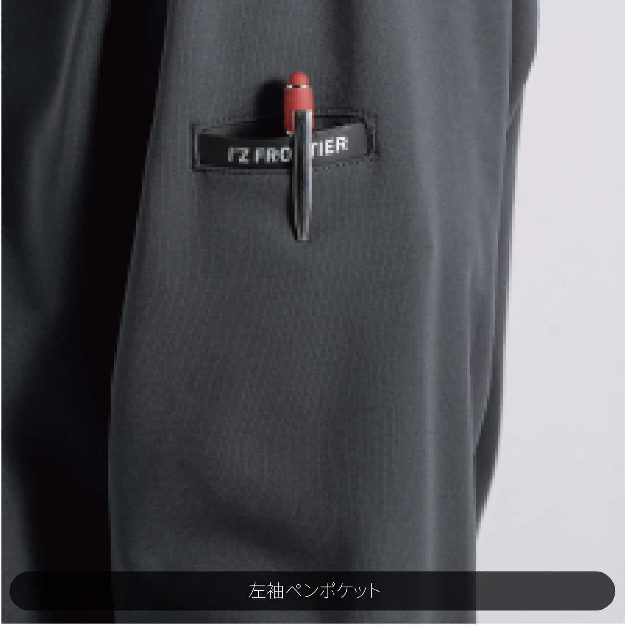 ▶複合繊維を採用し、伸長率ヨコ約40%、伸長回復率(1時間後) ヨコ約85%を測 定した適度な動き易さと、ポリウレタン糸使用素材では再現出来ない肘抜け感を 軽減したスタイリングを実現します。