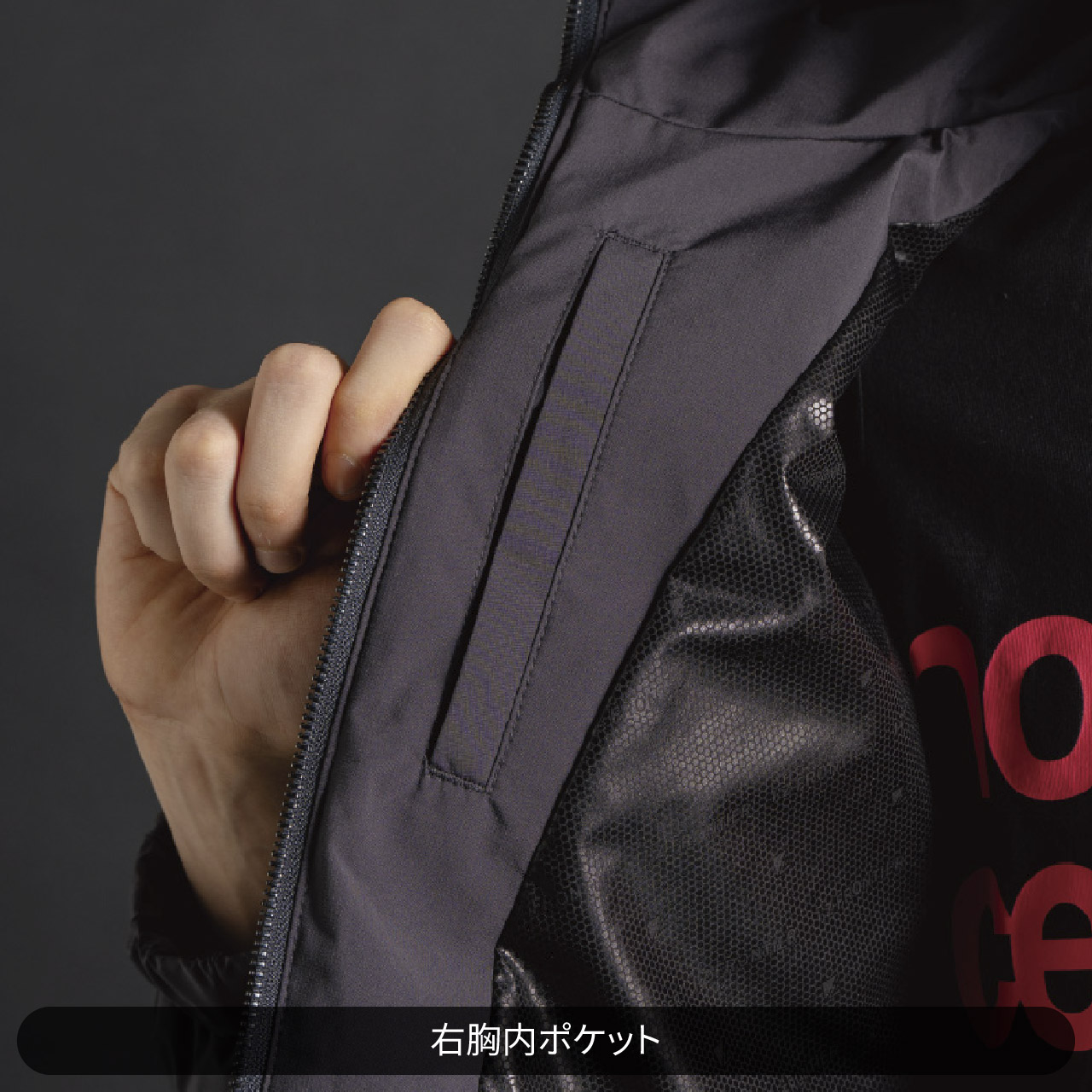 ▶裏生地にはブラックアルミニウムリフレクトプリントを施し身体の熱を効果的に反射。更なる保温性アップを実現しています(袖裏にアルミプリントはございません)。