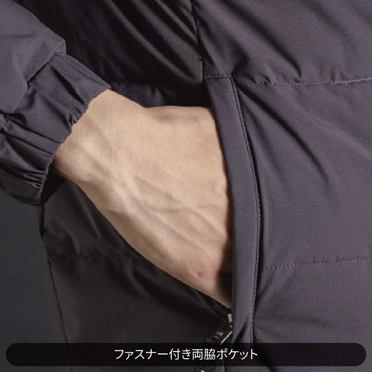 ▶袖先、裾には耐久性の高いストレッチリブを使用。あらゆる動きにフィットし風の侵入を軽減します。