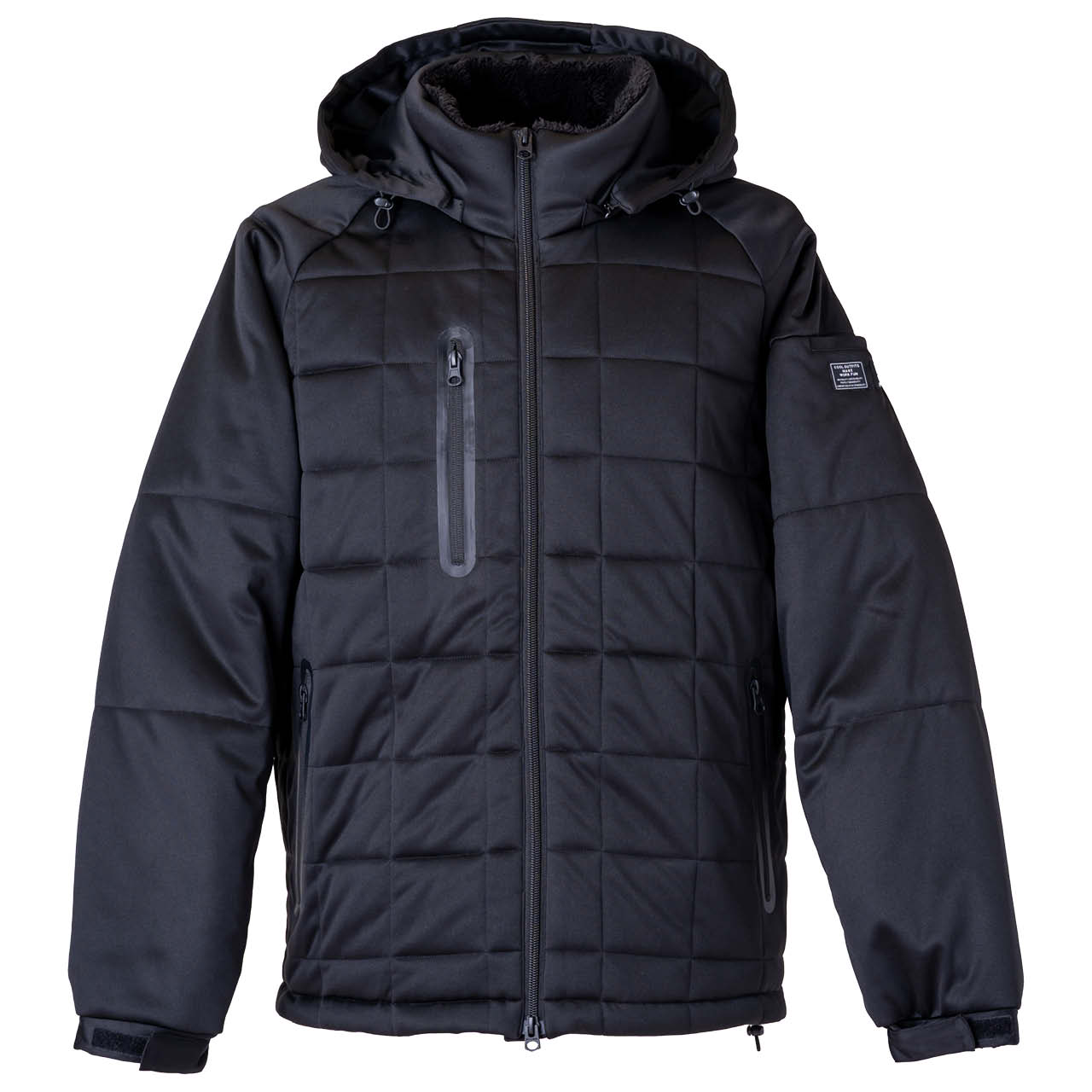 寒い現場でもぬくもりを感じられるよう、襟の裏にファーを施しており、フードは取り外し可能です。背中と前身ごろの綿はスクエアブロックキルトで綿の偏りを防ぎ、いつまでも快適に使用することができます。